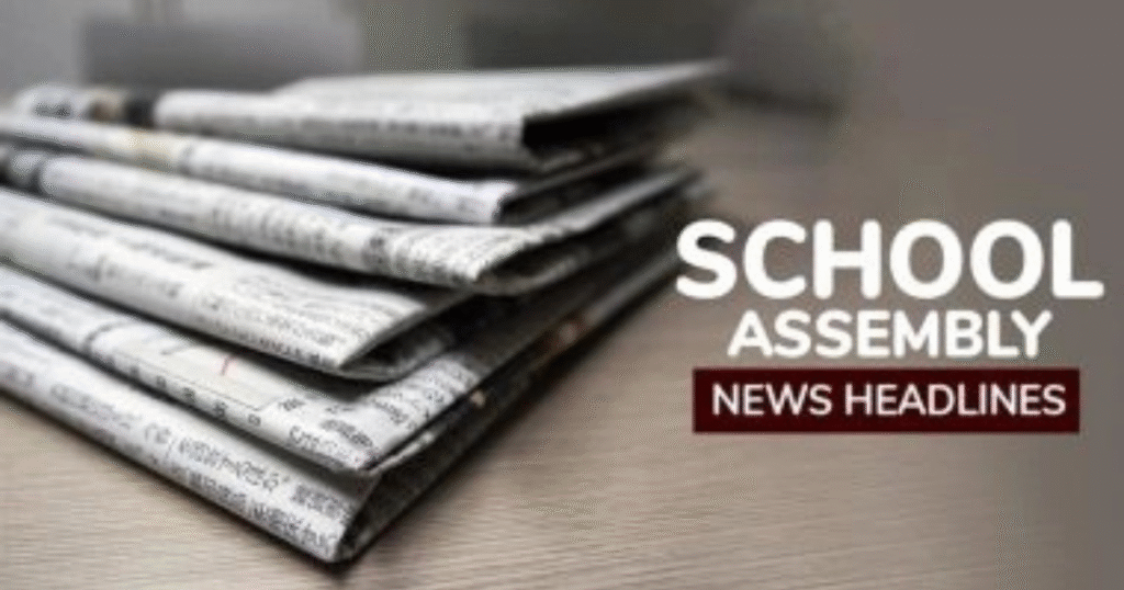हर सुबह की शुरुआत तब सार्थक होती है जब हम कुछ नया सीखें और अपने ज्ञान को साझा करें। स्कूल असेंबली में समाचार प्रस्तुत करना केवल एक परंपरा नहीं, बल्कि छात्रों के सर्वांगीण विकास का एक अहम हिस्सा है। इसी उद्देश्य से आज हम लेकर आए हैं School Assembly News Headlines Today (27 अक्टूबर 2025), जिसमें राष्ट्रीय, अंतरराष्ट्रीय, खेल और व्यापार से जुड़ी सबसे अहम खबरों का संक्षिप्त और ज्ञानवर्धक संग्रह है।